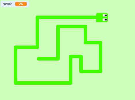 I love playing snake but it can be even more fun to code it in scratch. I had the help of a book made by a very confident scratcher named seanmcmanus. The book of witch I followed its advise was called scratch programming. I built the project with the pen blocks, the pen blocks can only be accessed by clicking the add extensions button and clicking on the square labeled pen.